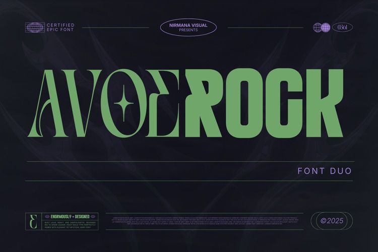 Avoerock Font is a professionally designed typeface that delivers clarity, structure, and consistent performance across various design applications. Avoerock is a bold font duo that blends expressive serif character with clean, modern sans for a powerful display-driven design system. Built for impact, Avoerock delivers strong contrast and visual hierarchy, making it ideal for logos, branding, streetwear graphics, posters, headlines, and editorial layouts. The serif brings attitude and personality, while the sans adds balance and versatility. Designed to stand out in modern culture-led visuals, Avoerock is perfect for brands that want to feel confident, edgy, and unmistakably original.