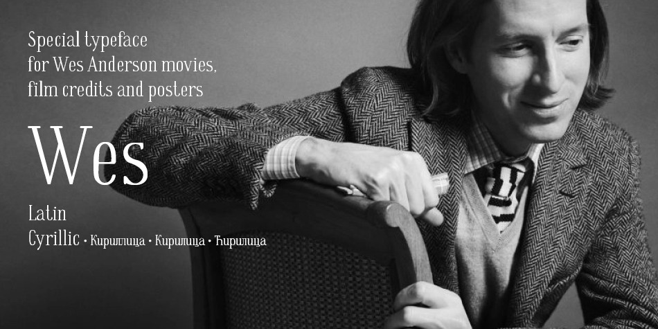 Wes Font – Designed in an online course at the TypeType School of fonts and typography, the Wes font draws inspiration from Wes Anderson’s signature aesthetic – with its symmetrical layout, pastel color palette, and fantastical storytelling. Designer Yelena Madyankina, a passionate fan of Anderson’s films, aimed to create a font ideal for Wes Anderson’s film introductions, posters, and titles.